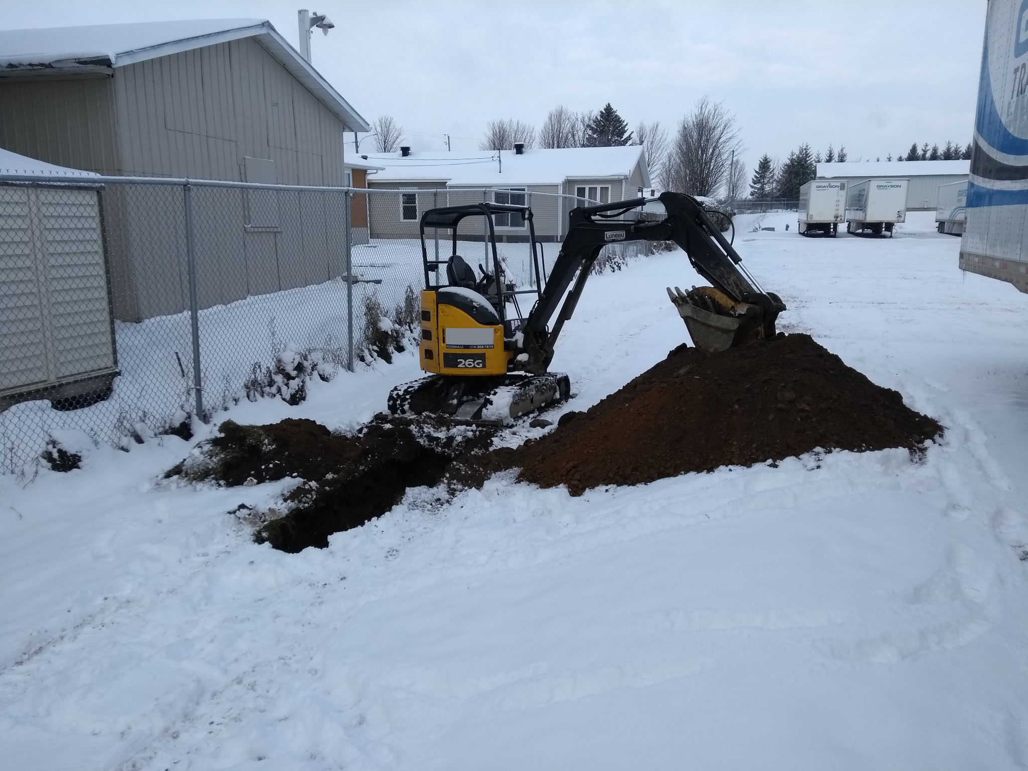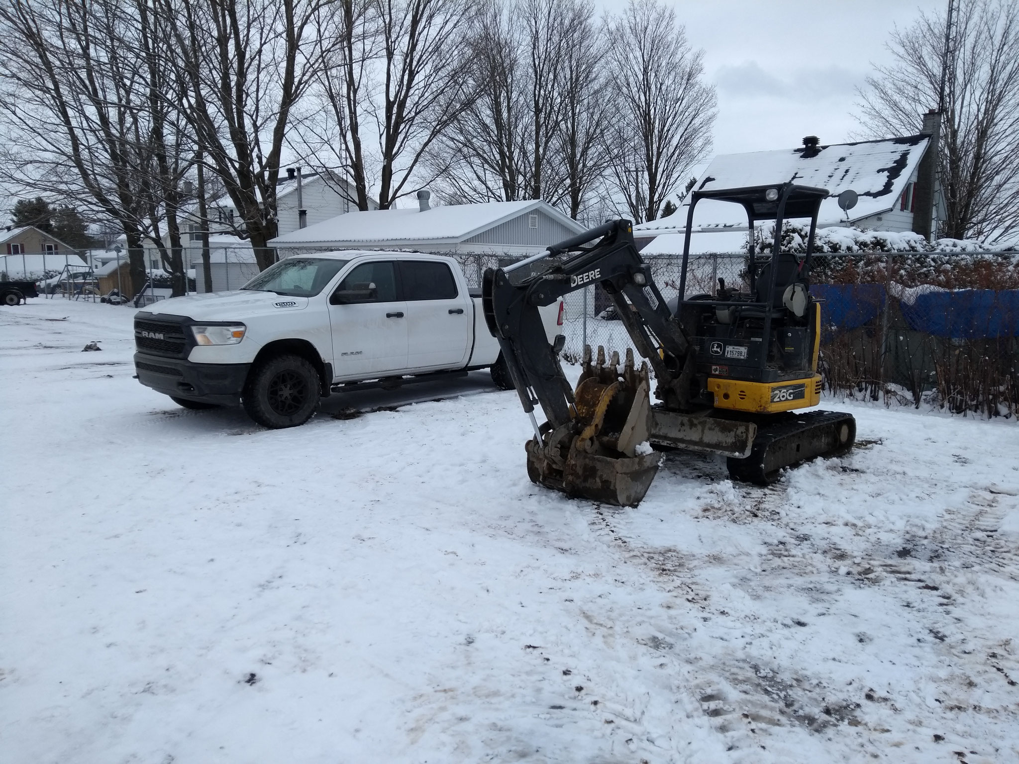 L'entreprise offre la location d'une chargeuse-pelleteuse ou de mini-excavatrices avec opérateur pour exécuter différents travaux de terrassement, de nivellement et de mini-excavation dans le domaine résidentiel et commercial (hors construction), tels que :